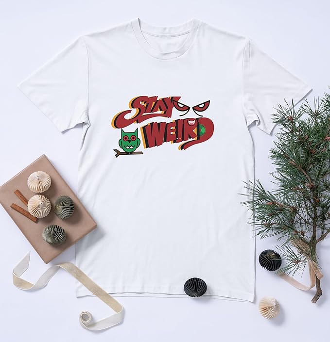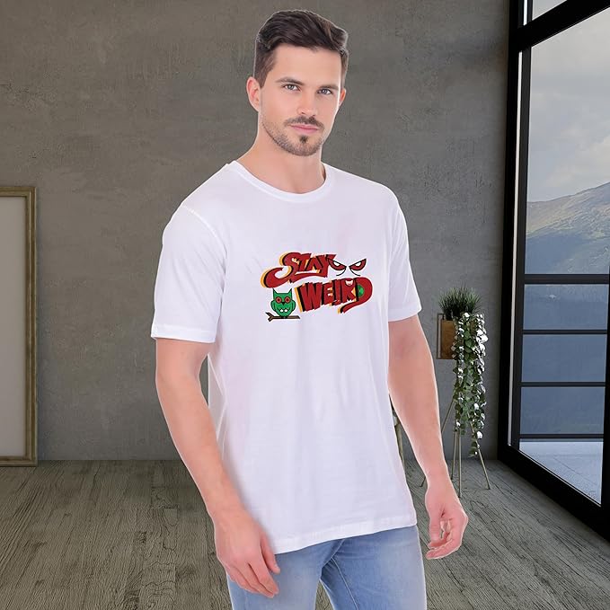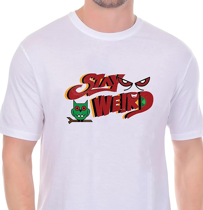 Half Sleeve White Tshirt in Blended Cotton Fabric | Stay Weird Theme